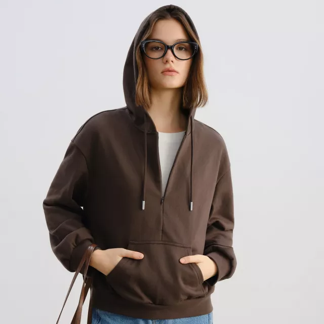 • Sporty hooded sweatshirt with a full-opening zipper for easy wear.