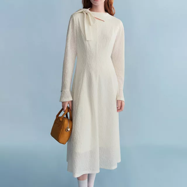 What truly sets this dress apart is its balance of comfort and sophistication. The knitted texture adds warmth and softness, while the three-dimensional pendant detail brings a unique fashion touch you won’t find in basic winter dresses. The turn-up collar enhances its structured look, making it both professional and stylish.