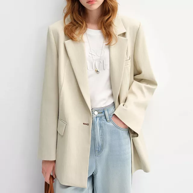 This blazer is designed to blend timeless style with modern sensibilities. The jacquard pattern adds a subtle texture that enhances its sophisticated appearance, while the button decoration elevates its elegance. The loose fit allows you to move freely and comfortably throughout the day without feeling restricted. Its breathable, lightweight fabric ensures that you’ll stay comfortable no matter where your busy day takes you.