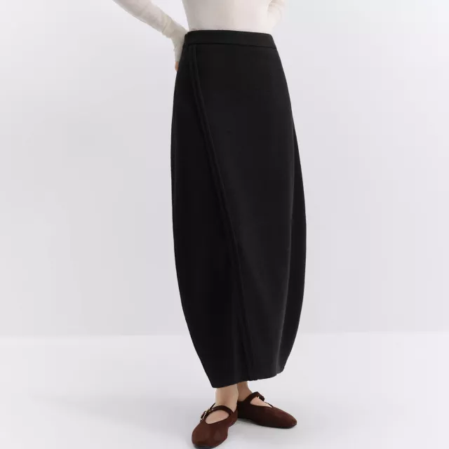 This skirt stands out because of its structured yet soft knit that holds its shape without feeling stiff. The pleated design adds texture and movement, while the natural high waist enhances your silhouette for a sleek, slimming look. Its ankle-length cut offers coverage and elegance, ideal for chilly days without sacrificing style.