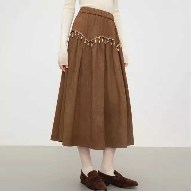 This skirt features a natural high waistline that flatters your silhouette and highlights your shape without feeling restrictive. The straight cut and soft pleats create a structured yet feminine look, perfect for both casual outings and stylish commuting. Its mid-calf length adds sophistication while making it easy to pair with boots, heels, or sneakers.