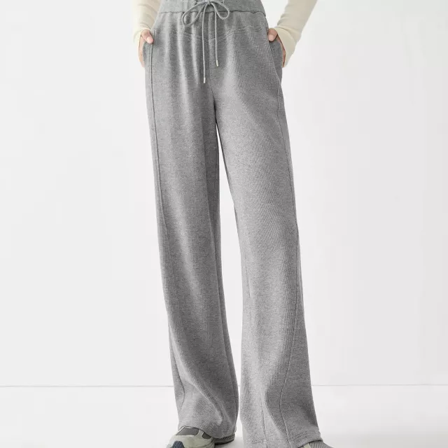 Unlike stiff winter trousers, these are crafted from a premium knitted blend of viscose, polyester, polyamide, and a touch of spandex. This unique mix gives them a soft feel with natural flexibility and durability. The front pleated detail adds a touch of structure, making them look refined while still feeling like loungewear.