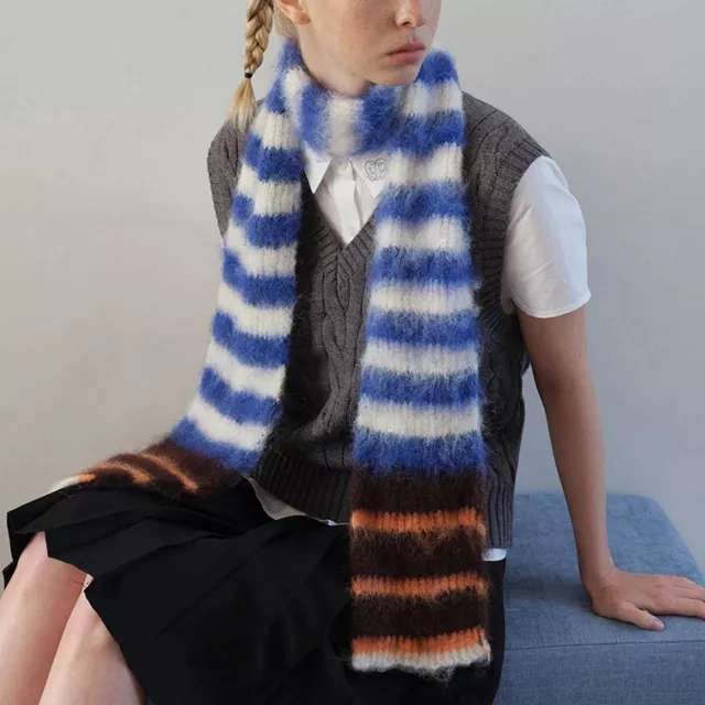Wrap yourself in style and comfort with this beautiful Lightweight Wool Triangle Scarf, crafted to keep you warm while elevating your everyday looks. Designed in a soft blend of wool and rabbit fur, it feels incredibly gentle against the skin and provides reliable warmth without the bulk. The vintage blue and coffee stripe pattern adds a timeless touch, making it a perfect accessory for casual days, work outfits, or weekend strolls.