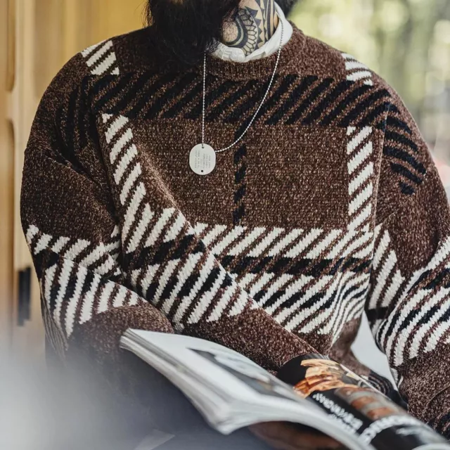 This sweater stands out because of its soft knitted fleece texture and balanced design. The stripes add personality without being too bold, making it perfect for men who like subtle fashion. The knit construction helps trap warmth while staying breathable, so you stay comfortable without overheating. It’s not bulky, but still provides enough insulation for winter wear.