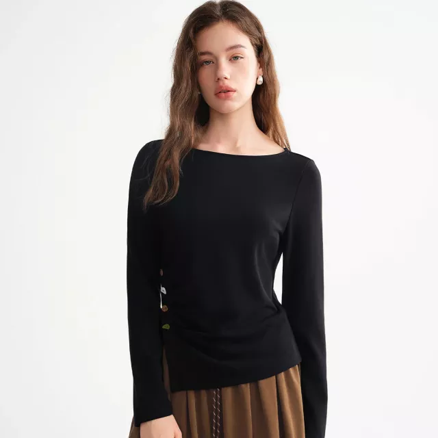• Stay season-ready with a blouse crafted specifically for cool weather.