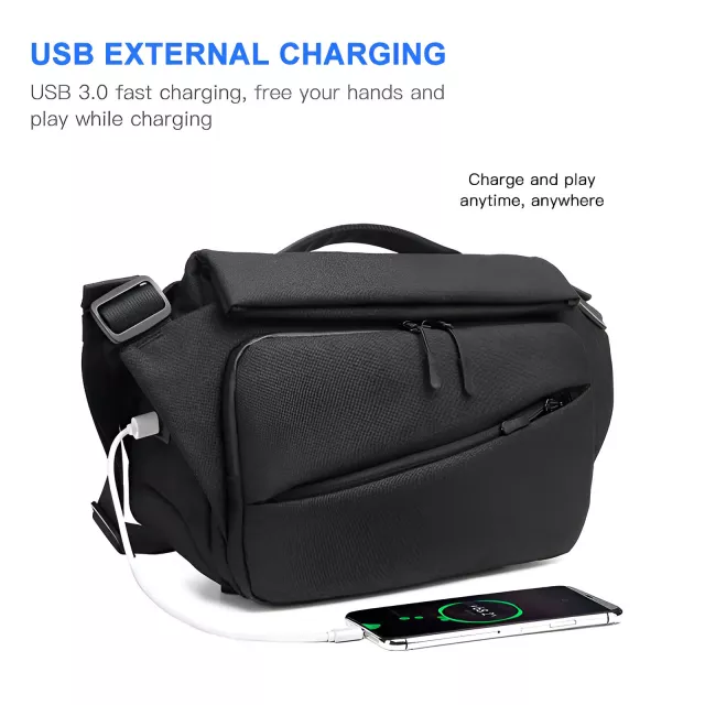 This bag stands out because it combines smart storage with modern lifestyle needs. It features a convenient USB charging port so you can power your device on the go using your own power bank. Inside, the organized layout includes dedicated space for your phone, wallet, tablet, and other essentials, so you never have to dig around to find what you need.