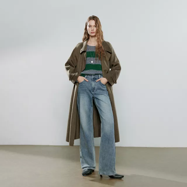 These jeans stand out because of their perfect balance between structure and stretch. The fabric hugs your shape without feeling tight, allowing easy movement when you sit, walk, or commute. The straight leg cut gives your outfit a clean, elongated look that pairs beautifully with ankle boots, sneakers, or loafers. The frosted blue finish adds a soft winter tone that looks fresh yet timeless, making them a staple you can wear year after year.