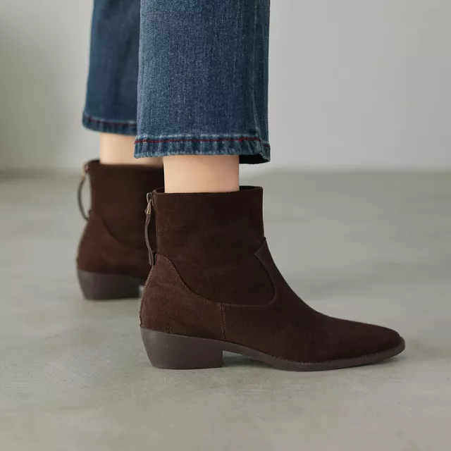 • Timeless Look: The classic round toe and sleek cow suede leather finish make these boots a timeless addition to your winter wardrobe.