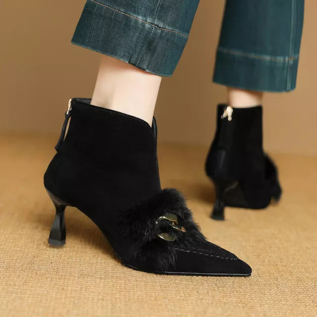 These boots are your go-to option for daily wear during the winter months. The soft fleece lining ensures that your feet stay cozy while the cow suede leather exterior offers a sophisticated look. Whether you’re heading out for a casual walk, running errands, or meeting friends for coffee, these boots will pair seamlessly with jeans, skirts, or dresses, adding an effortless charm to your outfits.