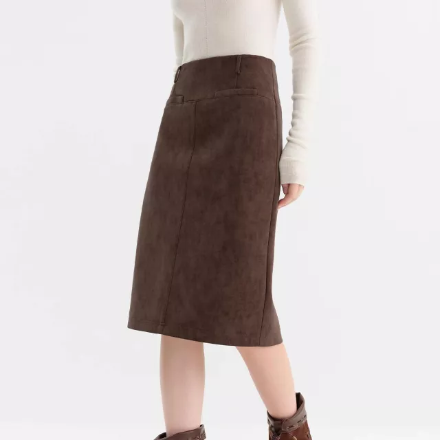This skirt is designed with simplicity and function in mind. The straight silhouette balances comfort and sophistication, while the mid-to-long length creates an office-appropriate profile. Depending on the size, the skirt length ranges from approximately 25.2 inches to 30.3 inches, offering coverage without feeling heavy or bulky. The fabric has slight stretch for easy movement and all-day wear.